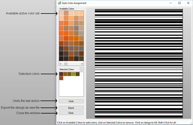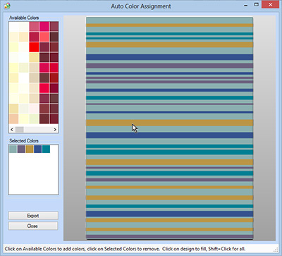 By using Auto Colors assignment, you can select any number of colors and apply in the design randomly. Click any color in the design to fill with selected color.