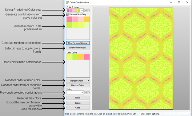 Shuffle Colors - To generate random combinations by scrambling the colors that are available in the design.