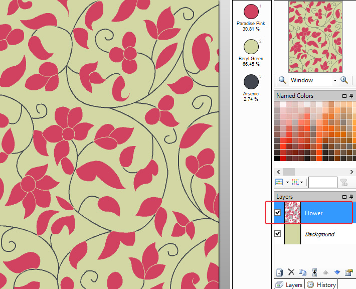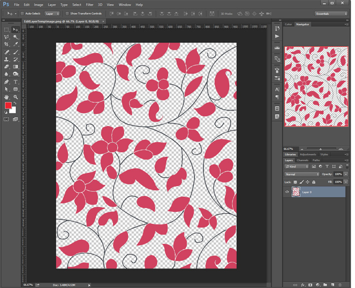 The active layer is "Flower" and we will be editing this motif in another software (Photoshop™)