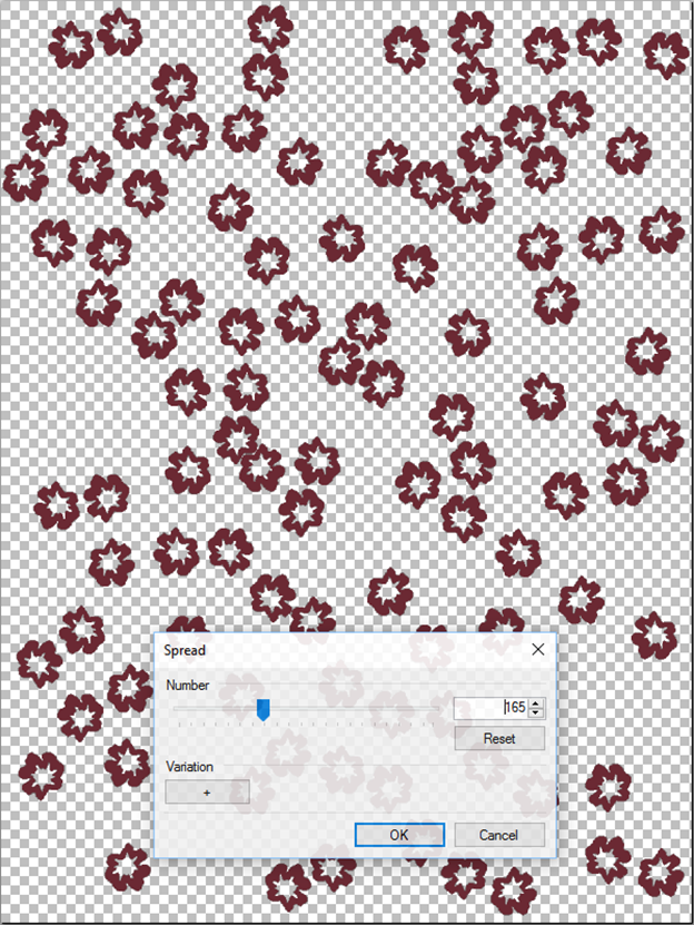 This tool is used to spread a single motif or pattern randomly to the whole canvas. To use the Motif Spread, you need to select the motif and specify the number of motifs to spread on the canvas.