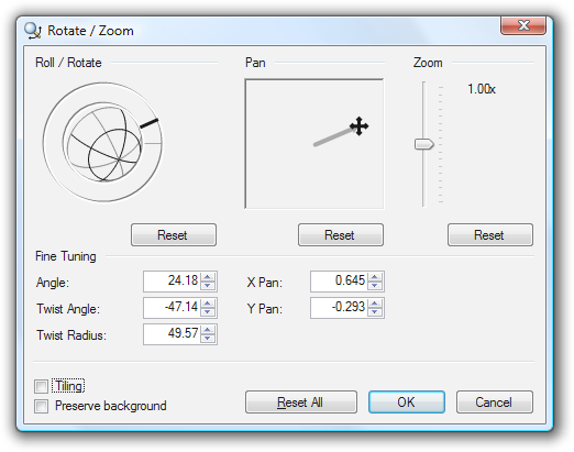 If the image is rotated, tilted, or panned in such a way that it does not fill the canvas, this will cause the image to start repeating on itself in such a way that it tiles the canvas.
